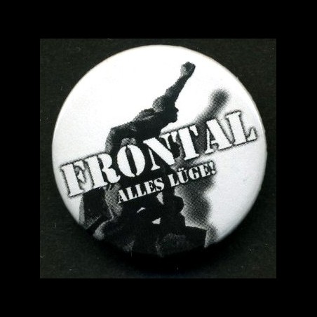 Klassischer Button 25mm mit dem offiziellen Namenszug "FRONTAL - Alles Lüge" - Version: Monument - weiß