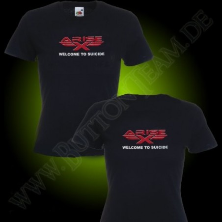 mit dem Arise-X Logo in Zweifarbdruck mit ultradünner Flexfolie (...nicht so ein hartes Plastikzeug) und darunter ein wählbarer Textzeile (Songtitel).