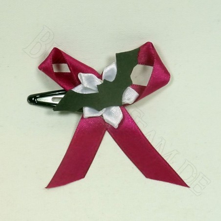 Die flippige Haarspange, Fledermaus auf weißem und burgundfarbenen Satin, sehr edel.