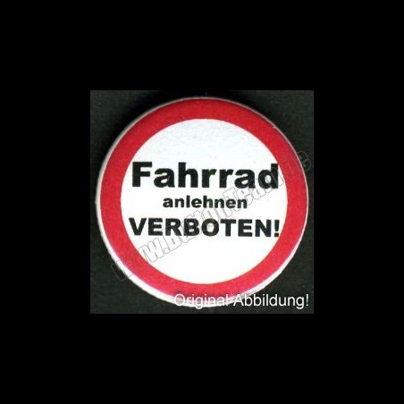 Button 25mm "Fahrrad anlehnen verboten!" mit Si-Nadel